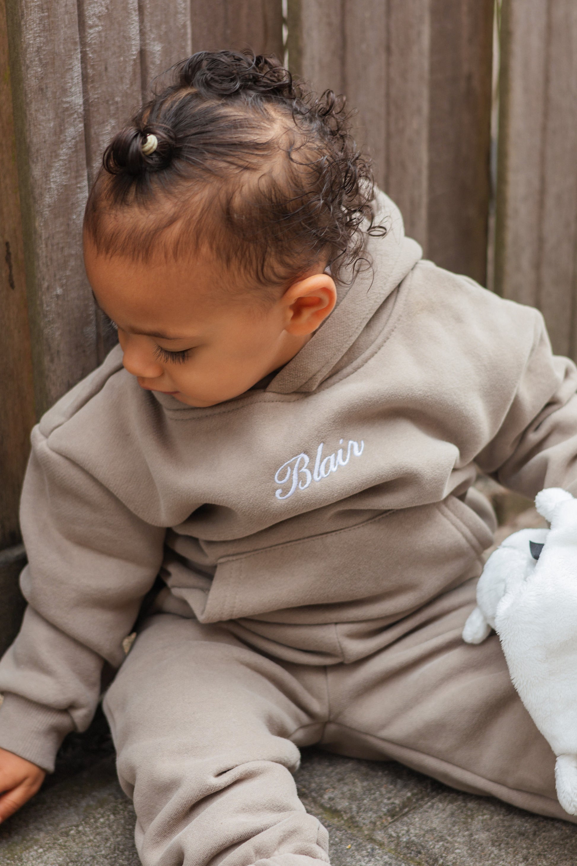 Stijlvolle en comfortabele hoodie-set, gepersonaliseerd met naam of initialen.